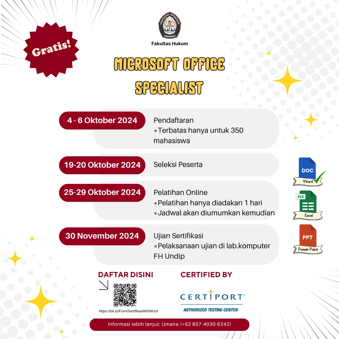 Undip Law Faculty students, don’t miss this golden opportunity to enhance your digital skills! Only 350 students can participate in this training. Register now and