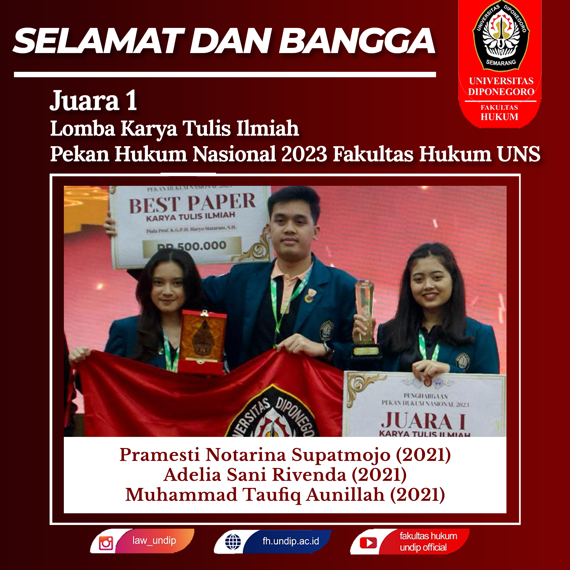 FH Undip Students Successfully Won First Place in the Contract Drafting Competition in the 2023 Santara Law Competition