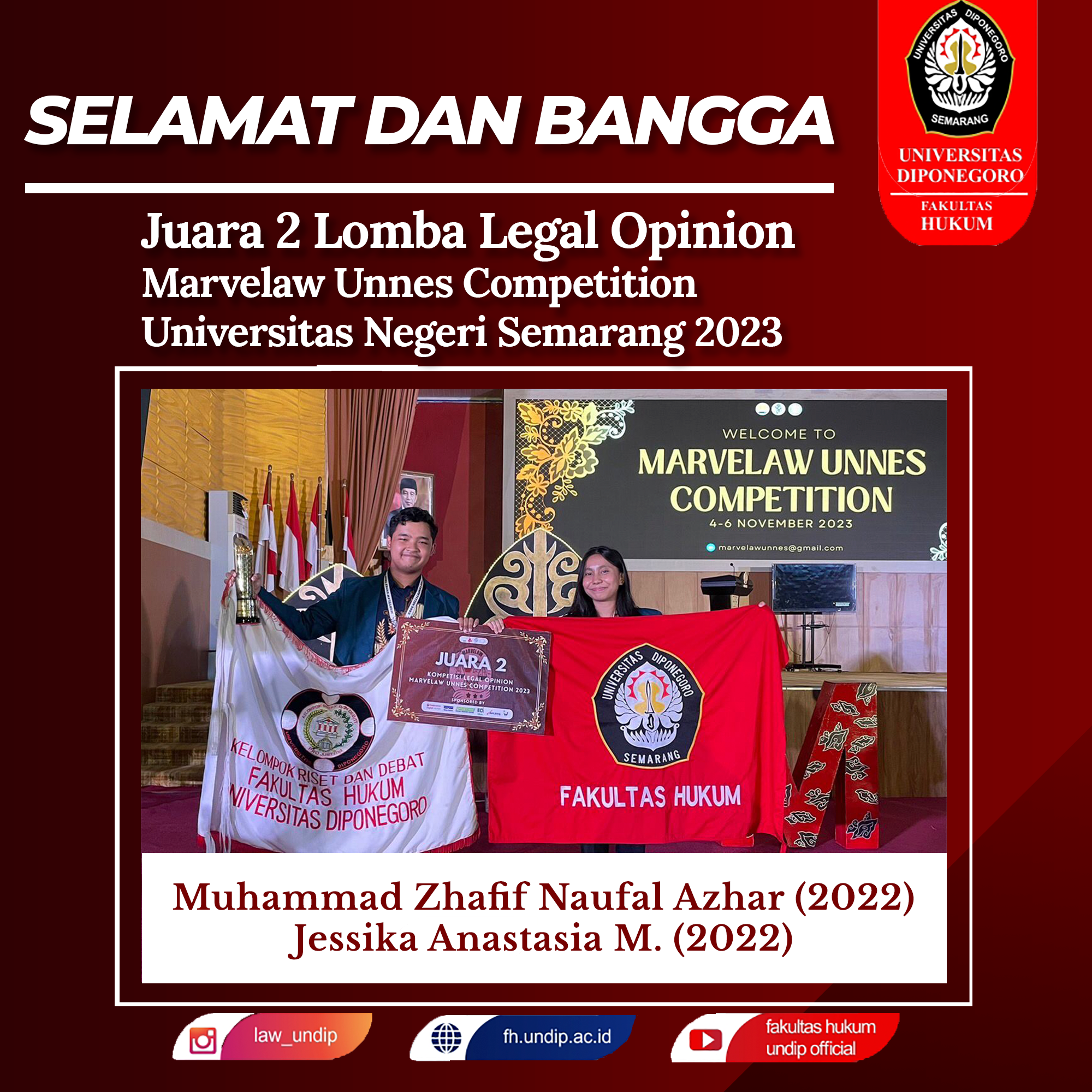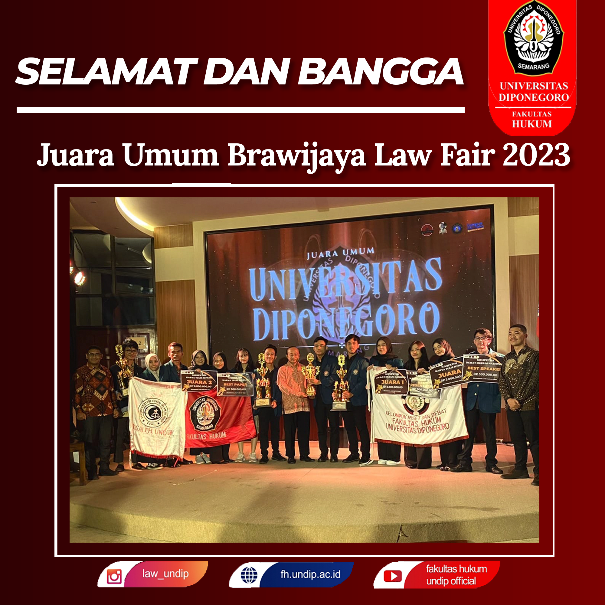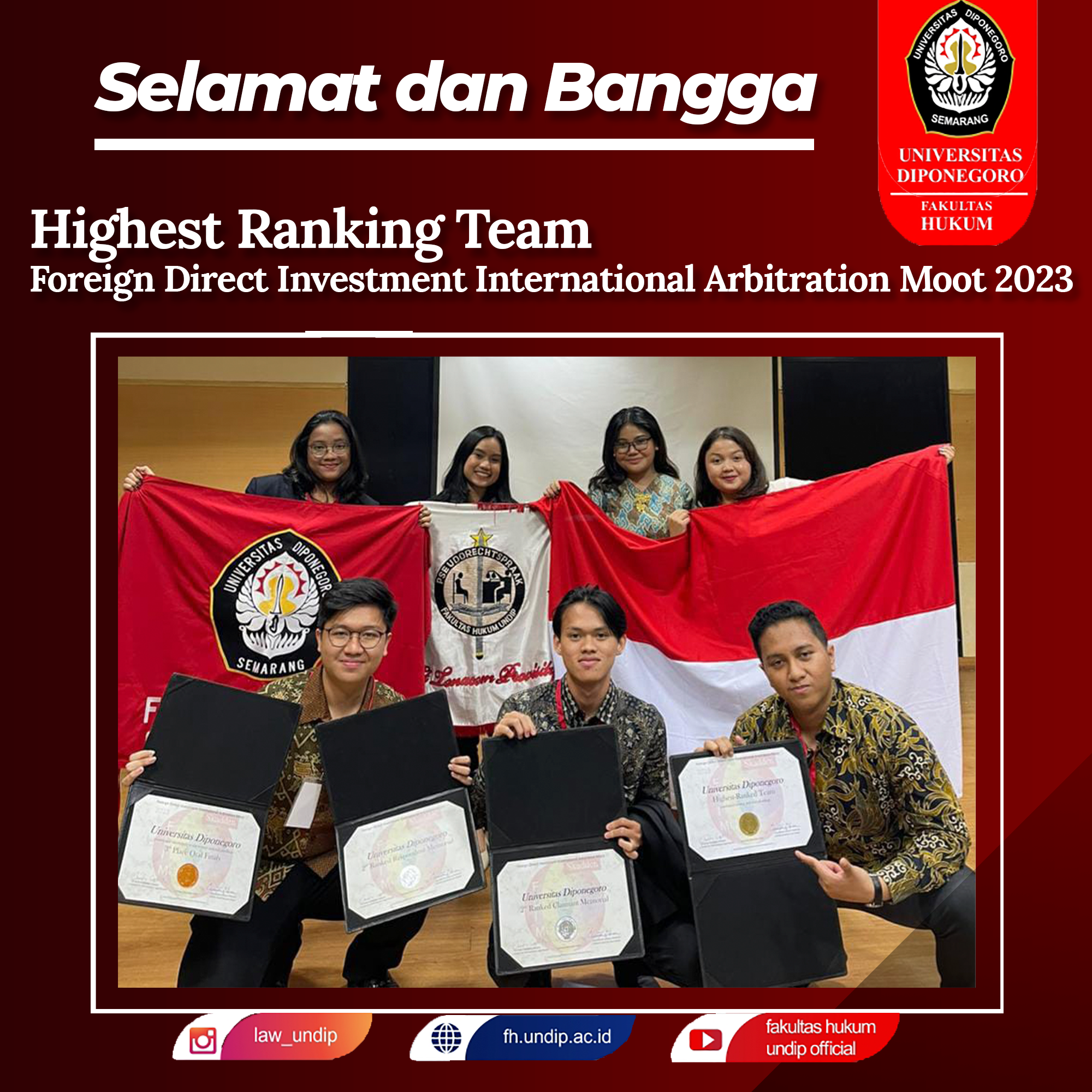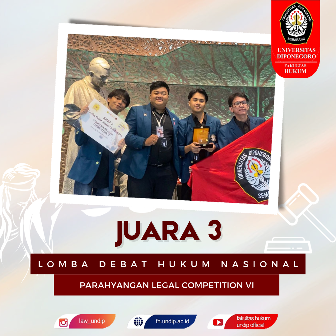 The FH Undip Student Delegation under the coordination of UKM-F KRD successfully achieved the proud achievement of winning third place in the Parahyangan Legal Competition