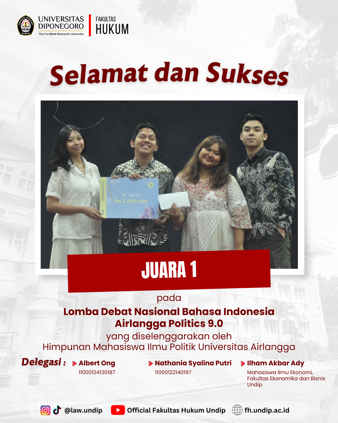 Semarang, February 27, 2025 – The Faculty of Law, Diponegoro University (FH Undip) once again inaugurated the Management and Advisors of Student Organizations (Ormawa) for