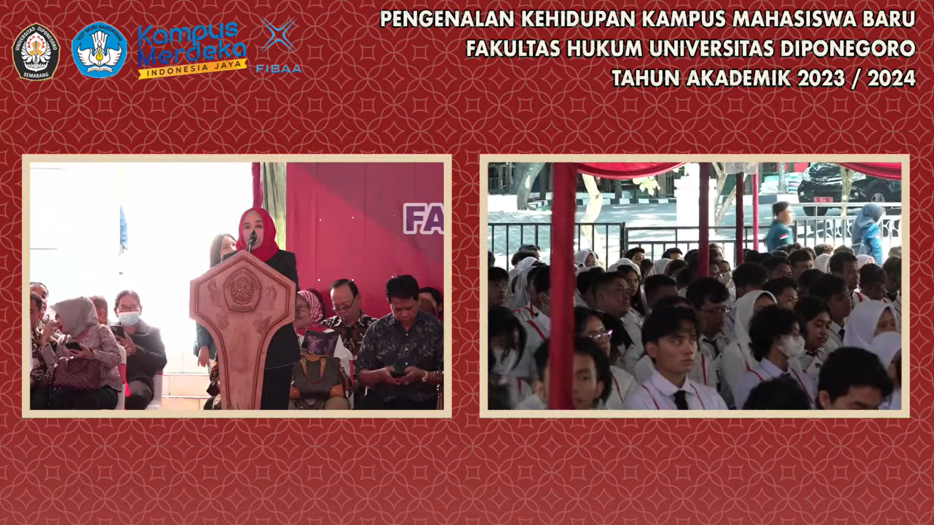 Before closing the ceremony, a video of congratulations was played to new students, an introduction to the campus, and an introduction to the lecturers. The Dean of the Faculty of Law UNDIP closed the PKKMB ceremony by tapping the gavel 3 times.