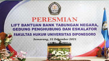 Semarang, December 31, 2021, At the end of 2021, the Faculty of Law UNDIP, has completed the construction of several campus facilities. In order to support the activities of the FH UNDIP academic community, which has been undergoing the covid-19 pandemic for almost 2 years, an elevator, mosque, connecting bridge, student inspiration porch and escalator have been inaugurated. The event began with remarks by the Dean of the Faculty of Law UNDIP, Prof. Dr. Retno Saraswati, SH, MHum, followed by the direct inauguration by the rector of Diponegoro University, Prof.Dr. Yos Johan Utama, SH, MHum. Present were invited guests, vice rector IV of Diponegoro University and the deans of faculties and schools in UNDIP. The elevator is located in the Prof. building. Satjipto Raharjo, SH is a CSR assistance from Bank BTN. Also present and giving remarks were Mr. Roni Subagio as head of Bank BTN Regional VI office accompanied by Mr. Donny Dwiantoro, Head of Bank BTN Semarang Branch Office. The inauguration ceremony was marked by the signing of the collaboration between UNDIP and Bank BTN.