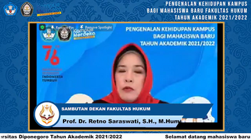 Semarang, August 21, 2021- In order to welcome new students and the 2021/2021 academic year, the Faculty of Law of Dipoengoro University was held the Student Orientation program. This occasion was organized with hybrid method namely the participants attended virtually through the zoom meetings platform and the committee is present offline in the Seminar Room, Litigation Building.