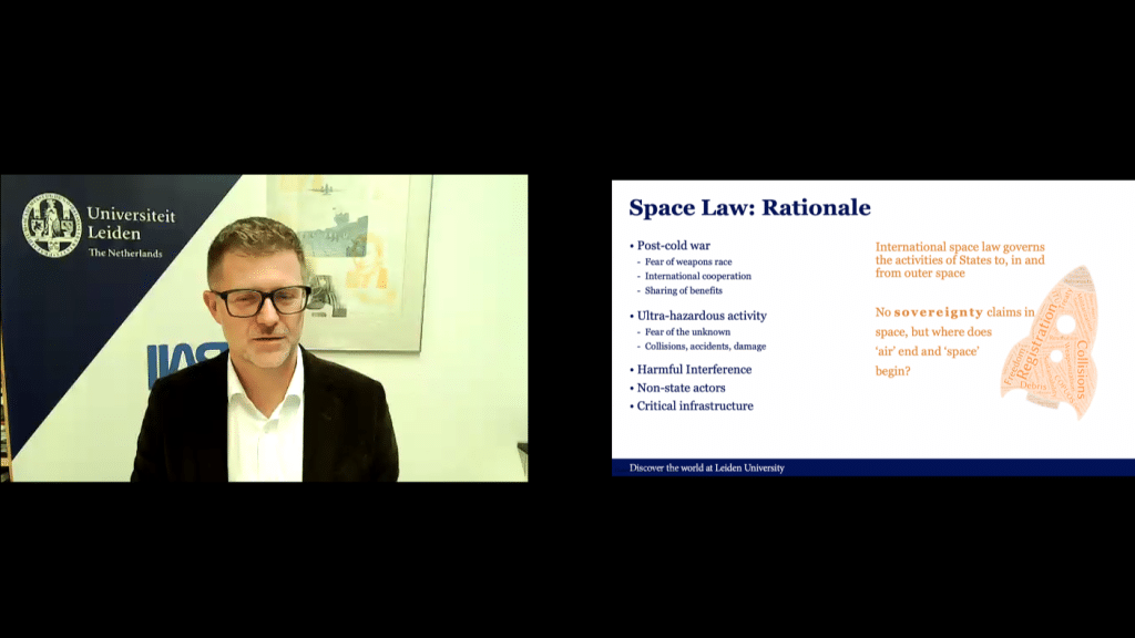 Dalam kuliahnya, Prof. Truxal menyoroti perkembangan regulasi internasional yang mengatur penggunaan ruang udara dan antariksa, termasuk tantangan hukum yang muncul seiring meningkatnya aktivitas komersial di luar angkasa.
